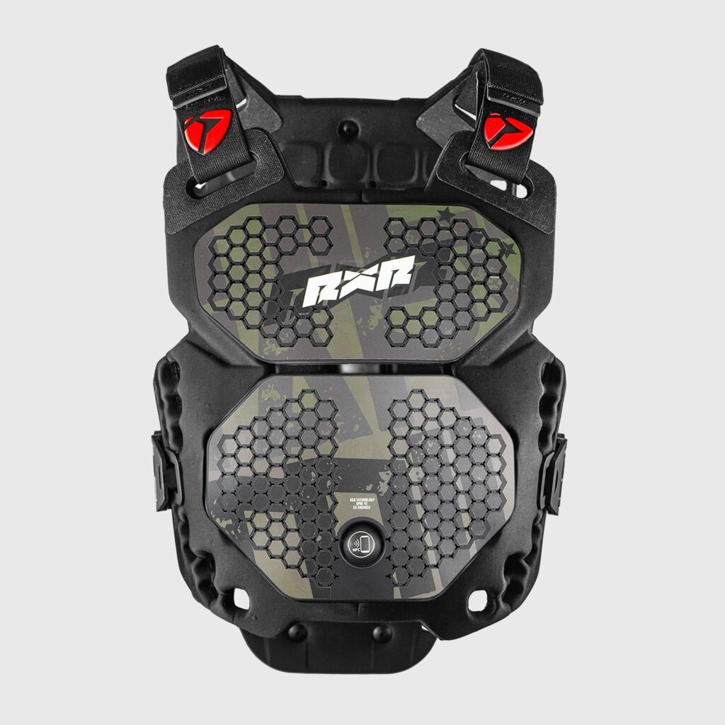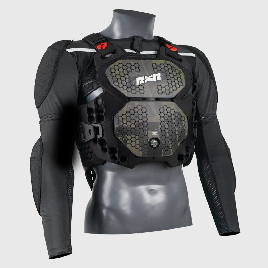 Découvrez le R-Pro 2, le dernier gilet de protection RXR Protect, conçu pour une sécurité et un confort inégalés. Avec une technologie avancée 3.0, un matériau TPU XV2BLACK ultra-résistant et une mousse non newtonienne, ce modèle offre une absorption optimale des chocs et un ajustement parfait.